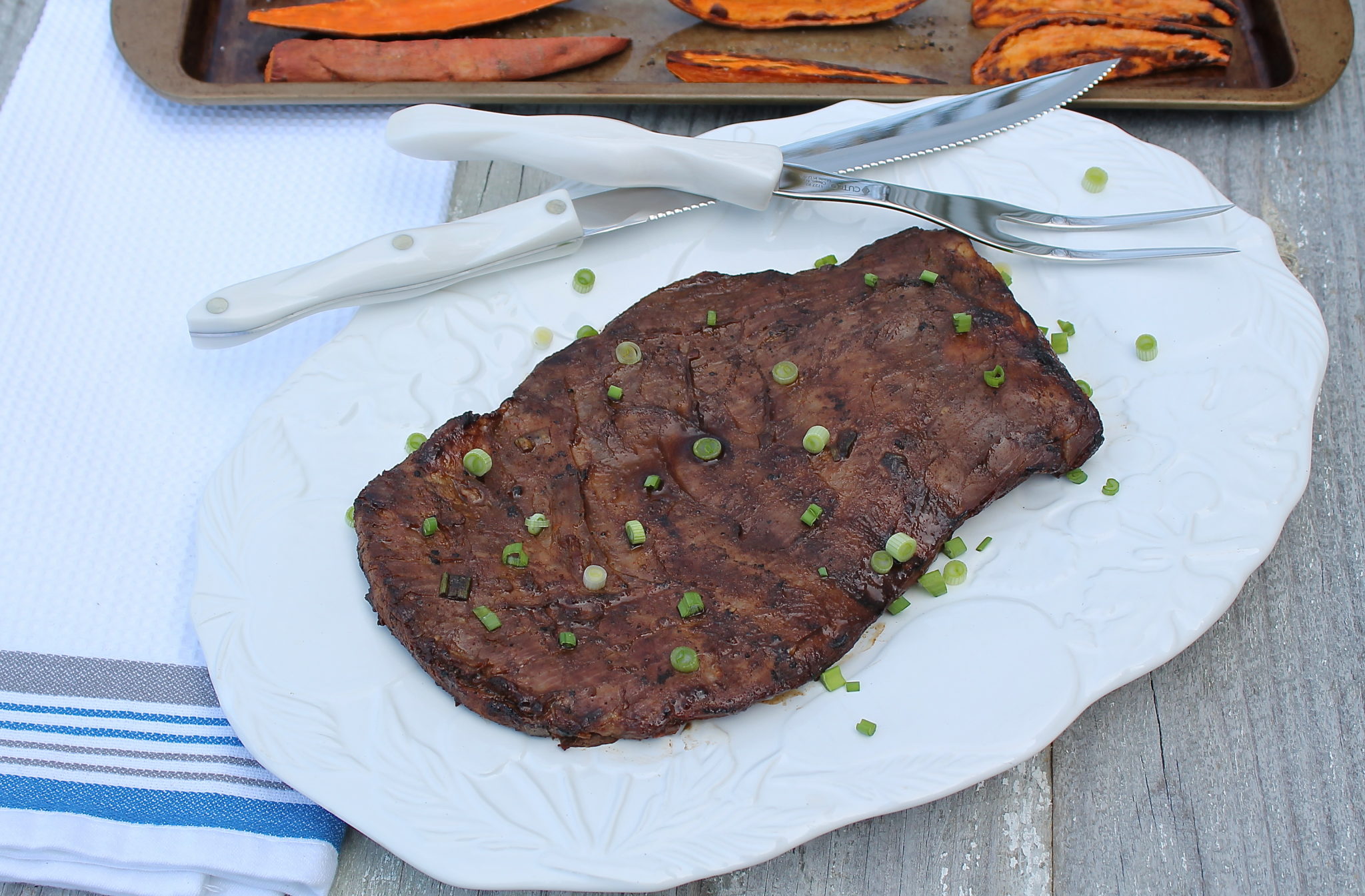 In the spirit of variety, my brother-in-law once kindly mentioned that my column was a little short on red meat. So, I am dedicating this juicy, Asian-inspired flank steak to him.