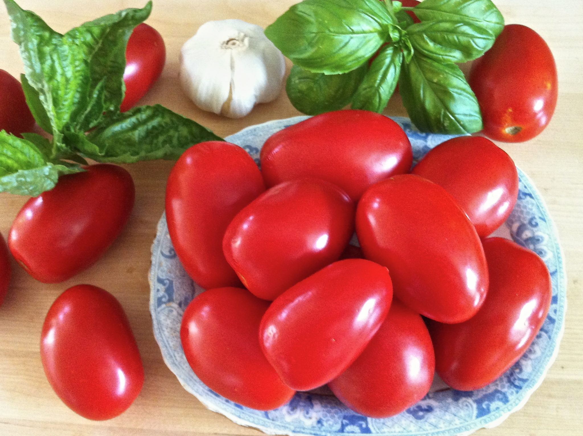 I recommend plum or Roma tomatoes for this recipe as they have fewer seeds than other varieties. They also have a lower water content, so you’ll get thicker sauce without having to cook it down as long as sauce made with traditional slicing tomatoes. This translates into a higher yield.