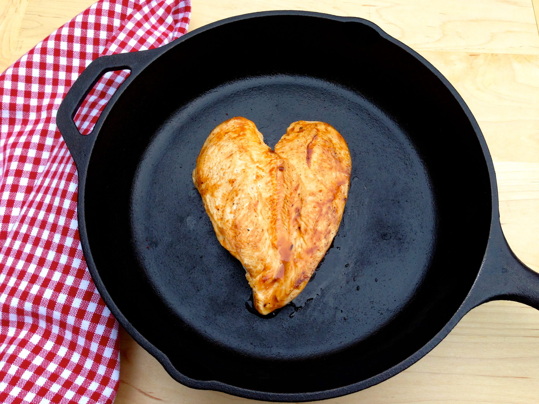 - Heat an oiled skillet over medium to medium-high heat. When hot, place the chicken breast, tender side up first and cook for about 3 minutes. Then, flip and cook for 3-5 minutes, depending on size of breast, until chicken is just cooked through the center. If you are using barbecue sauce, baste the cooked chicken with sauce on both sides and flip a couple of times in the hot skillet to caramelize the sauce a bit.