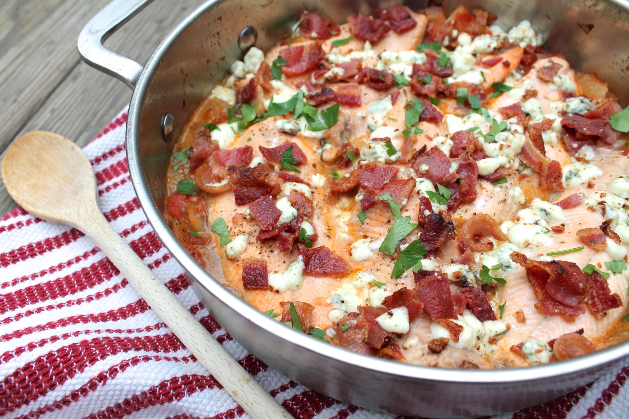 Blue Cheese and Bacon Braised Trout