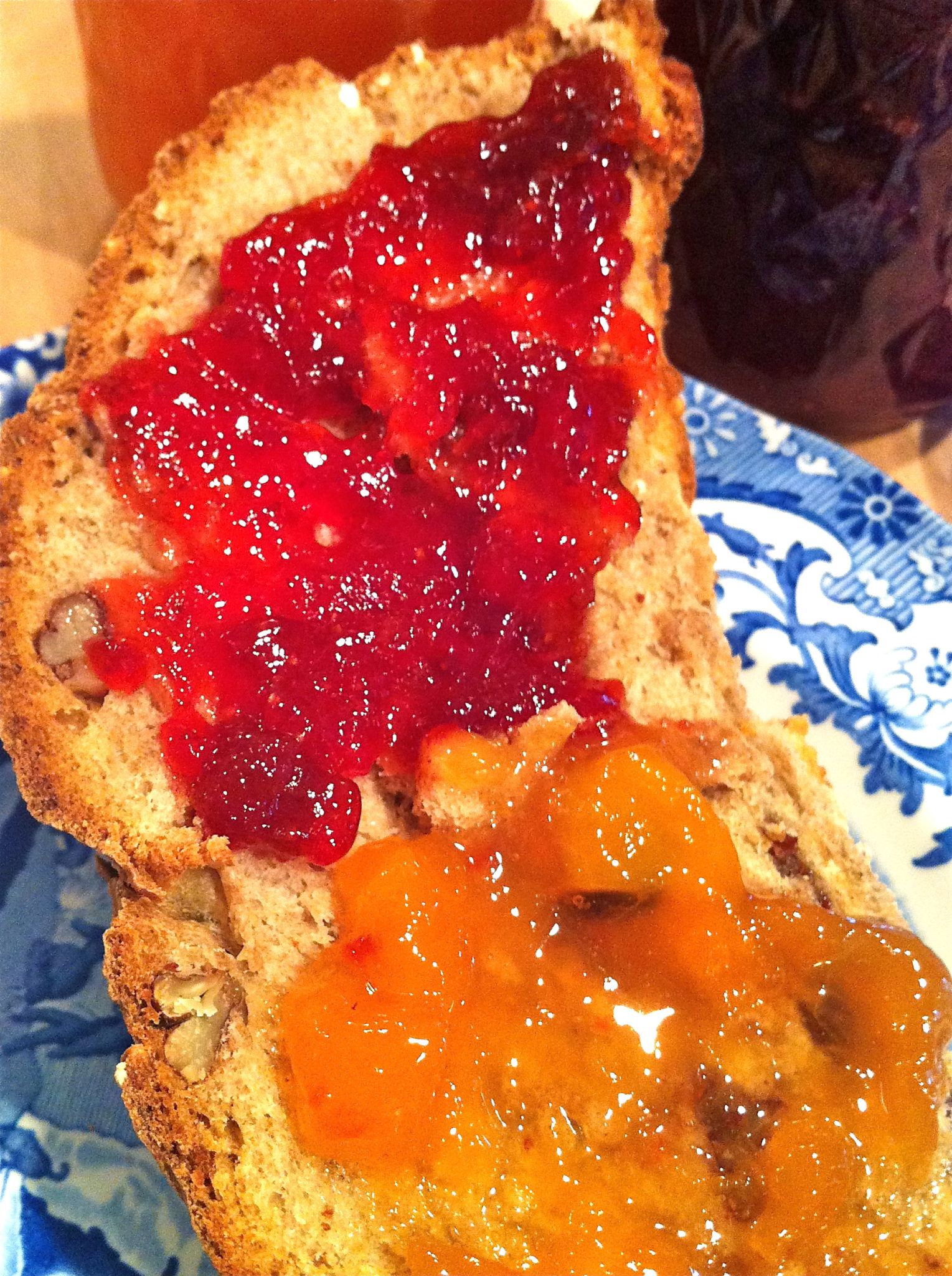 Earlier this week, I saw a friend’s photo of a piece of crusty peasant bread with a big smear of strawberry jam on it. The jam caught my attention first.