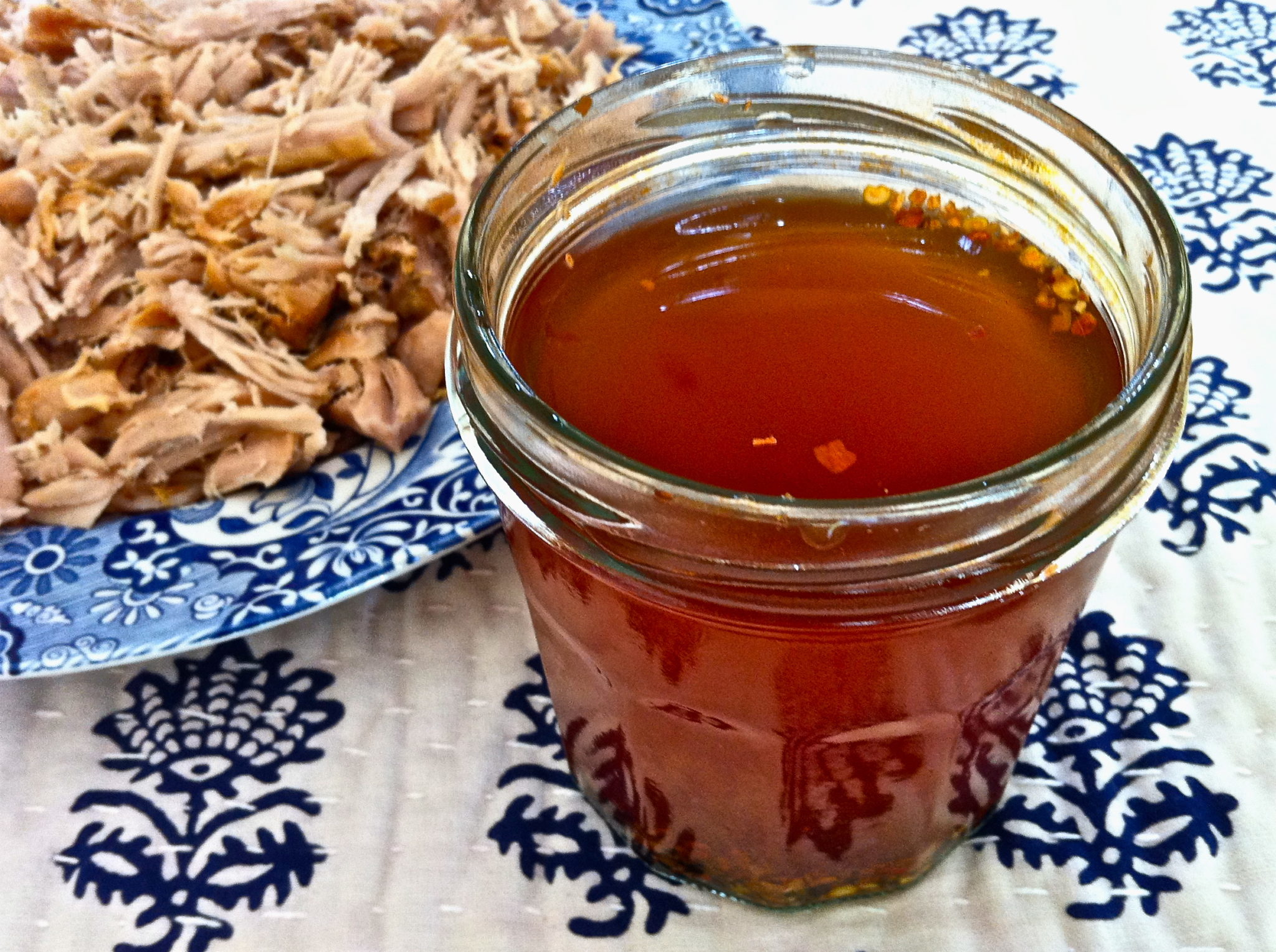 We are usually the tomato-based barbecue sauce type in this family. However, a very dear Southern friend shared her favorite vinegar sauce with me a while back and it was a complete hit!
