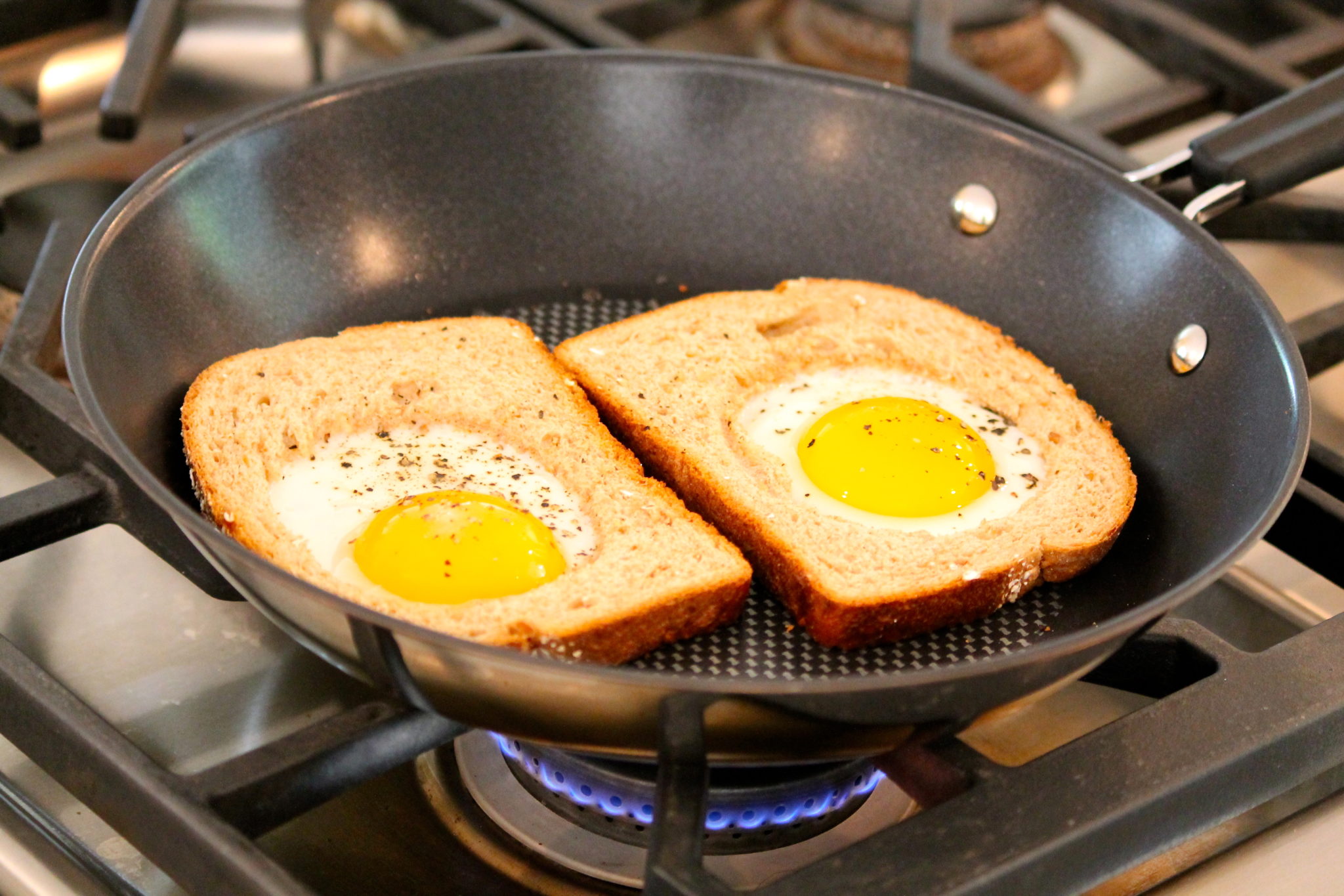 I call this a “one eyed sailor” I learned on a fishing boat from the cook in the galley. When the ocean is rough the egg won’t slide around on the griddle because the bread keeps it stable in one place. Easier for him to cook several at once. Add sliced avocado on top