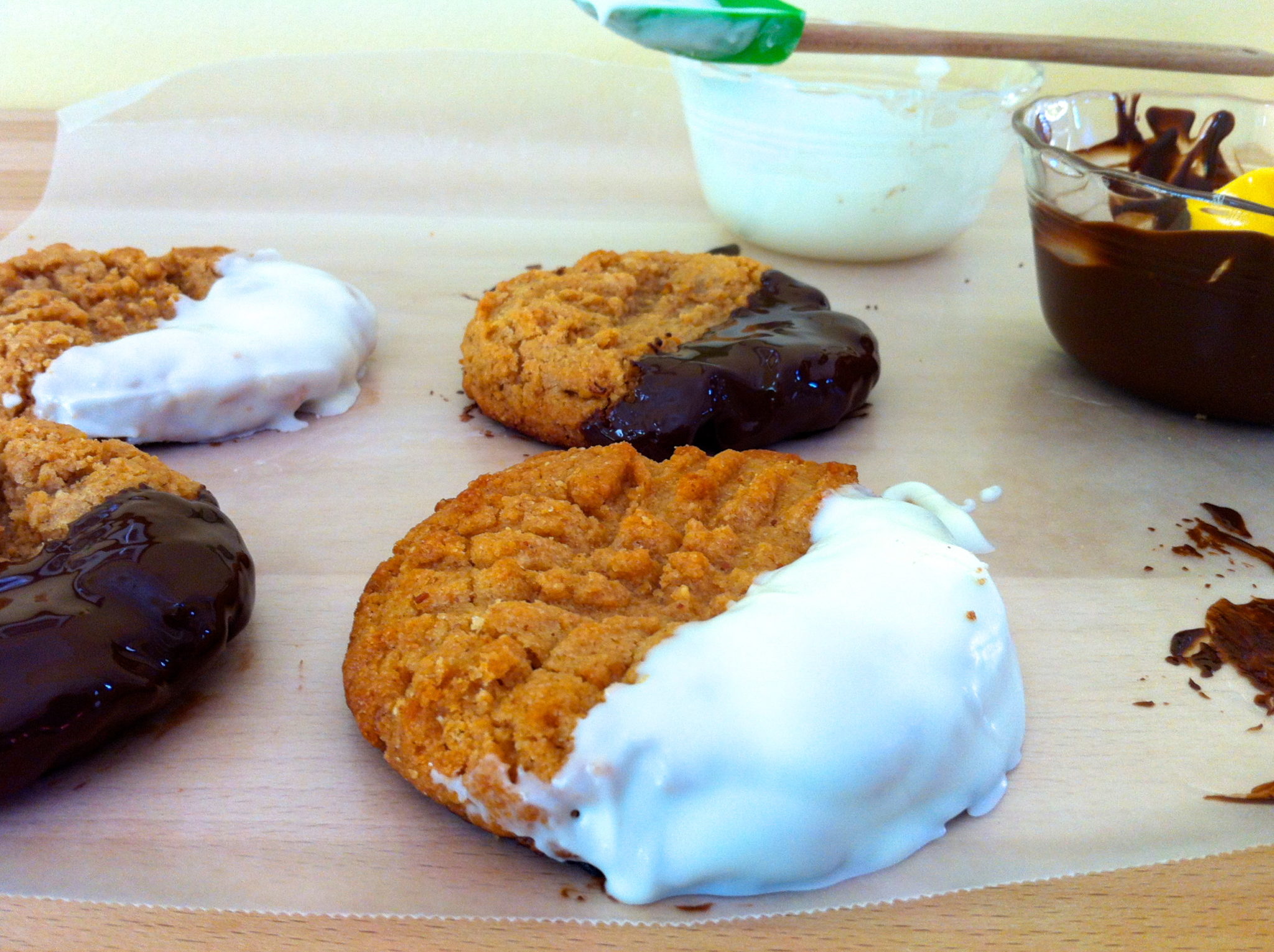Pro tip #2: For added decadence, dip the cooled cookies in melted chocolate. Dark chocolate is my personal favorite, although peanut butter has an affinity for white chocolate as well.