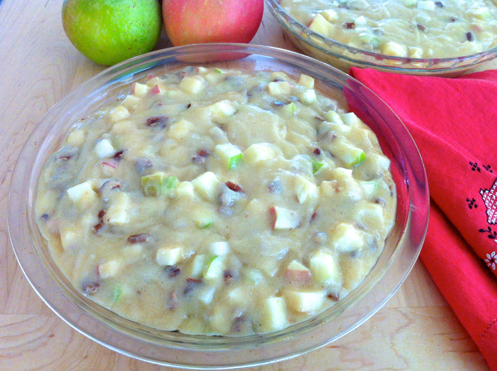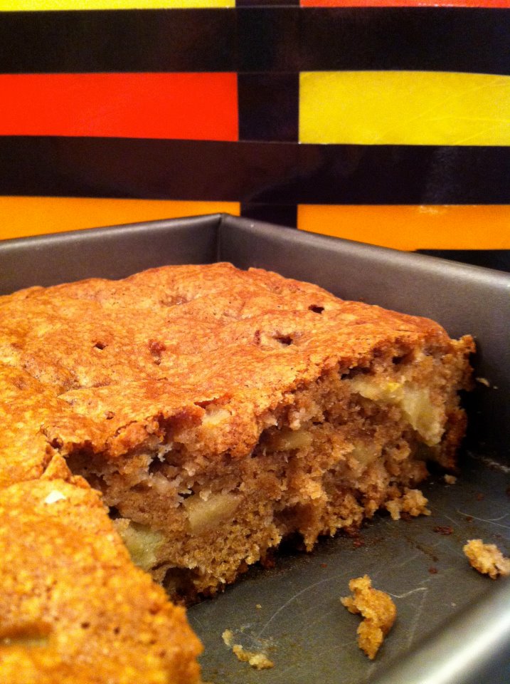 When I bake the following recipe–her family-favorite apple cake–I imagine her deftly paring the apples in a way I still cannot manage. Somewhere along the way, I decided to simply leave the skin on.
