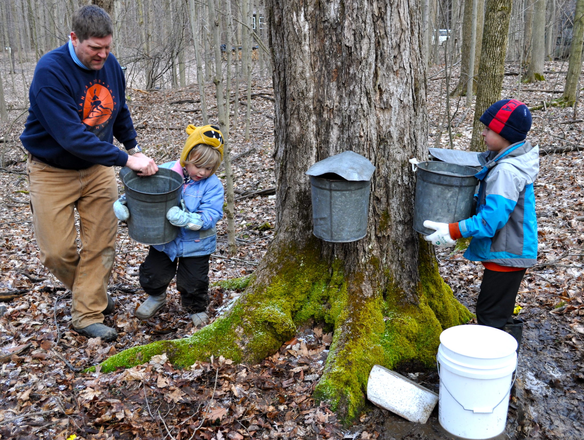 Dear friends of ours recently made a trek to a family farm across the state to help with the annual ritual of sugaring. They tap their maple trees and collect hundreds of gallons of sap in large buckets, all of which are hauled to the “sugar shanty” and slowly boiled in the “evaporator” until the liquid reaches the magical temperature that transforms the sap into the sweet, sticky syrup we all love.