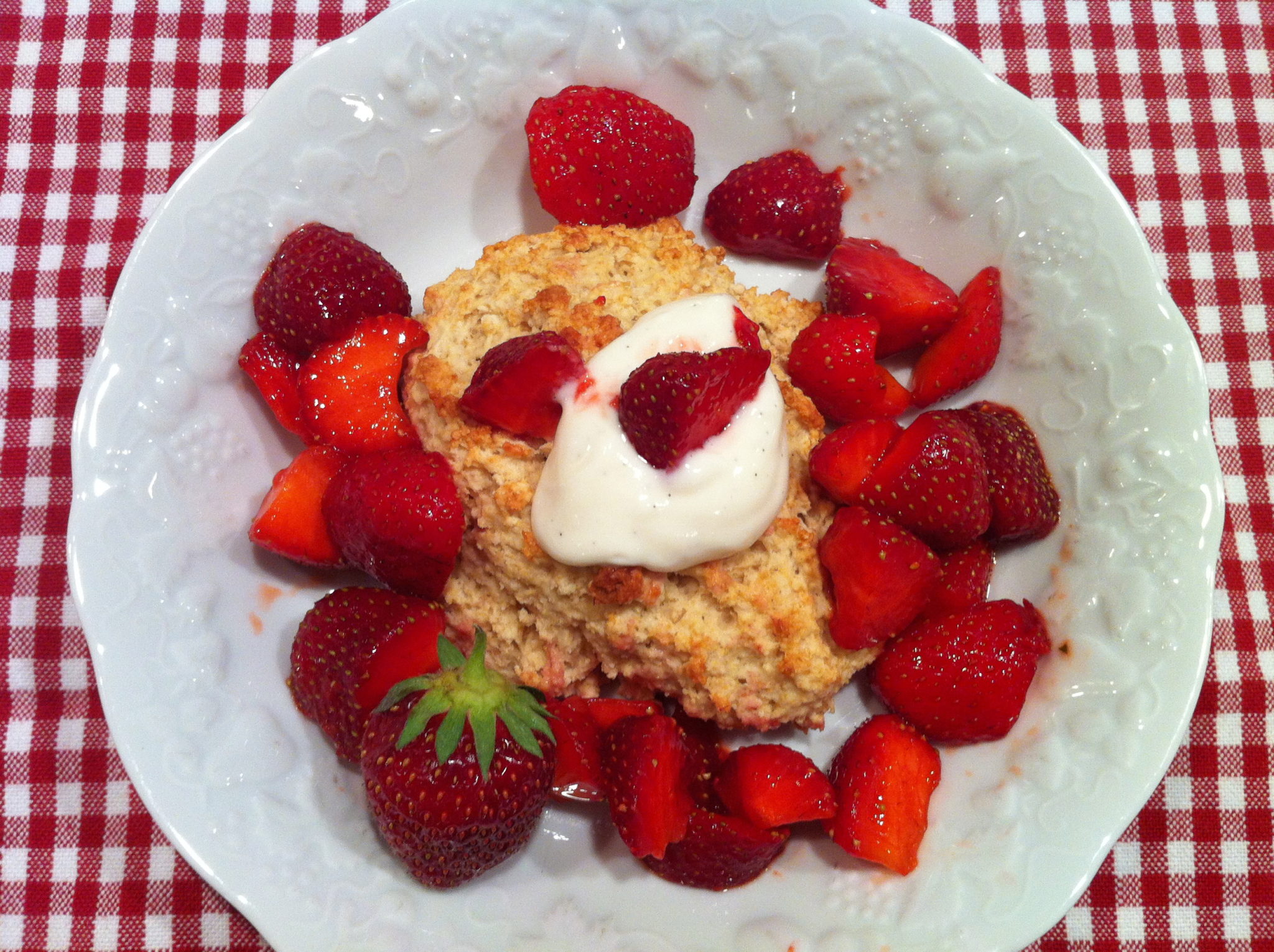 After spooning a generous amount of sweet, macerated berries and accompanying juices over the warm cake, we poured milk into our bowls and ate the strawberry shortcake as one would enjoy cereal or stovetop oatmeal.