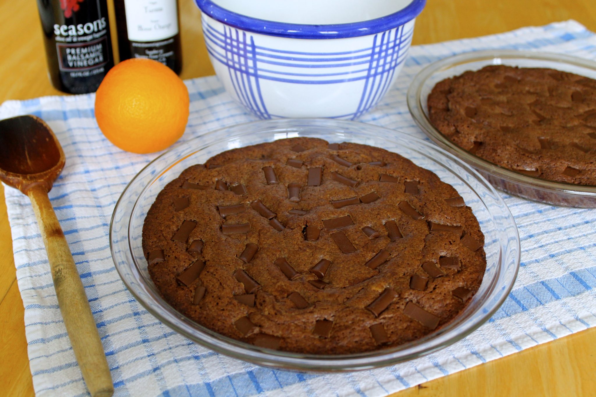 So, I made two batches: one using my classic recipe, the other incorporating the olive oil and a bit of tangerine balsamic vinegar I had in my pantry. Note that I have worked options into the recipe so you can make these brownies even if you don’t have these uniquely flavored oil and vinegar on hand. ย