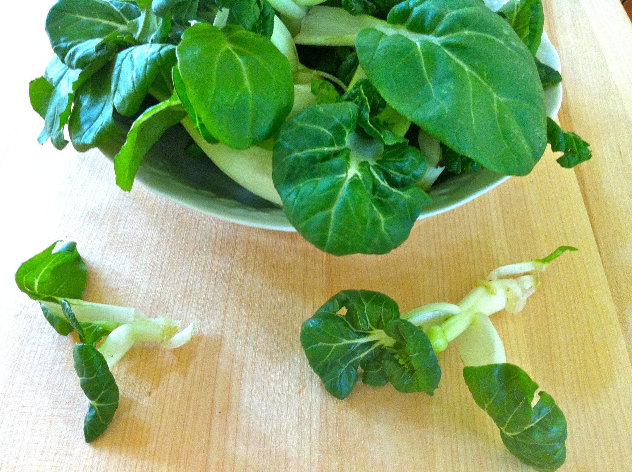 - 4-5 ounces pak choy (or baby bok choy, spinach, arugula, or tender kale leaves--chop if leaves are large)