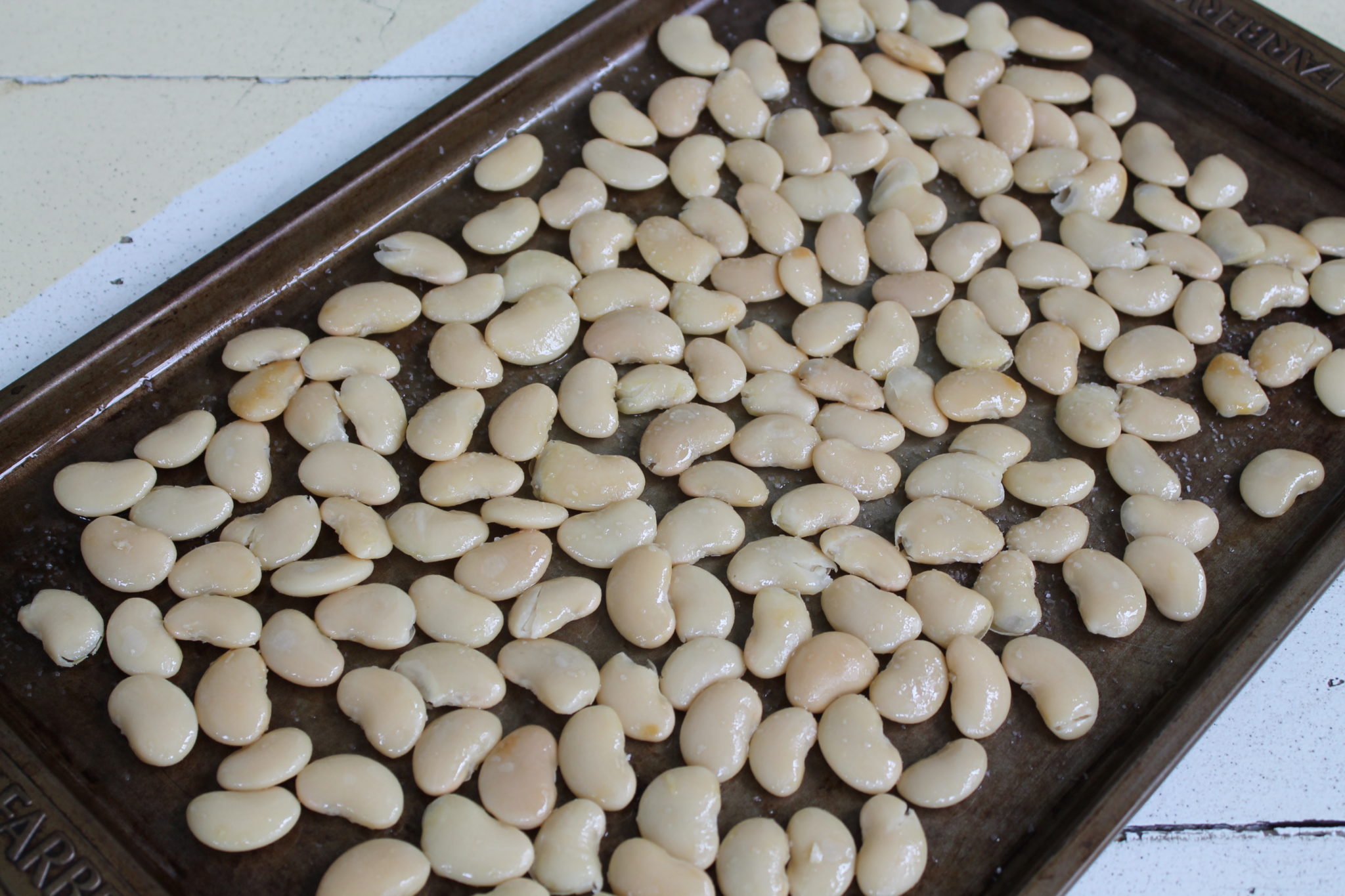 Lastly, because I love to experiment in the kitchen, I started to think that, if garbanzo beans taste so satisfying once roasted, why not other beans? Following the recipe are some photos with a few details about some of the other beans I have roasted. It actually started with a can of black eyed peas that had been in my pantry for quite a while. When they turned out crunchy and satisfying, albeit a little small, I decided that big butter beans could be the ticket. By the looks of them on the pan, I initially thought they were a big failure. But the looks belied the taste, and my son who does not like beans was the biggest fan! Now, I am buying more beans than ever!
