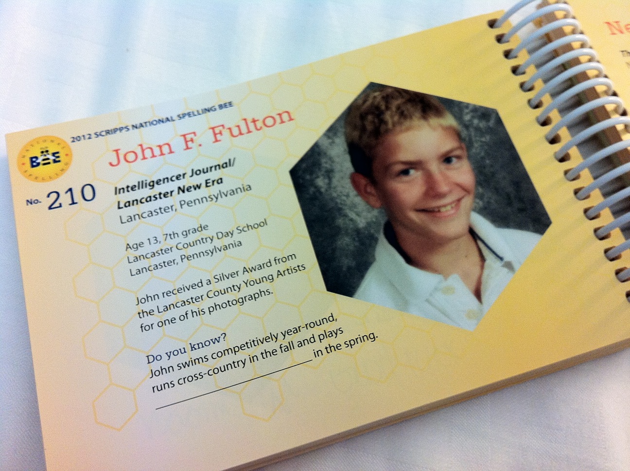 This is the photo I took when my son, John, won the spelling bee which got us to where we are right now–The Scripps National Spelling Bee in Washington, DC. (Okay, we are technically in National Harbor, Maryland!) That was in March. We are now starting a full week here, sponsored by the Intelligencer Journal/Lancaster New Era.