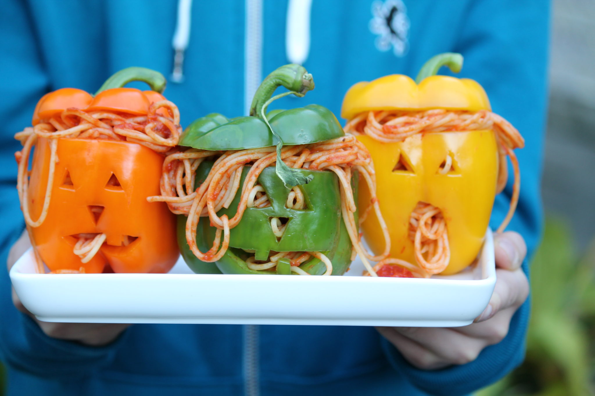 Spooky Spaghetti Stuffed Peppers