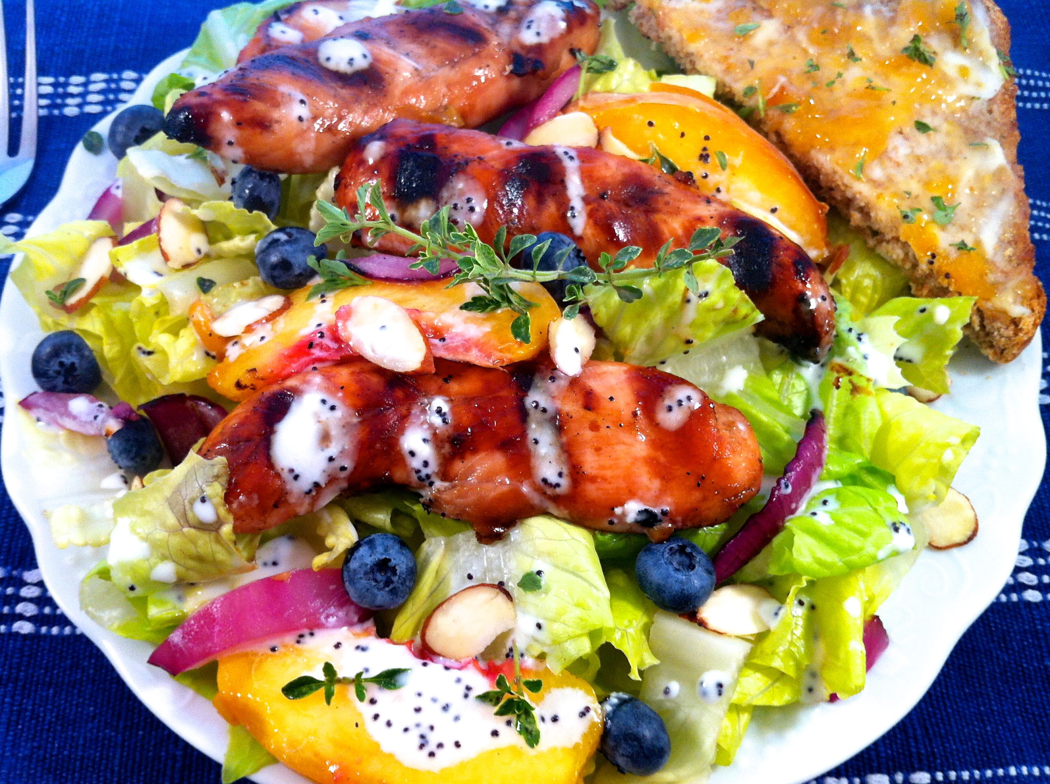 Summer Salad with Honey Lime Chicken and Creamy Poppy Seed Dressing