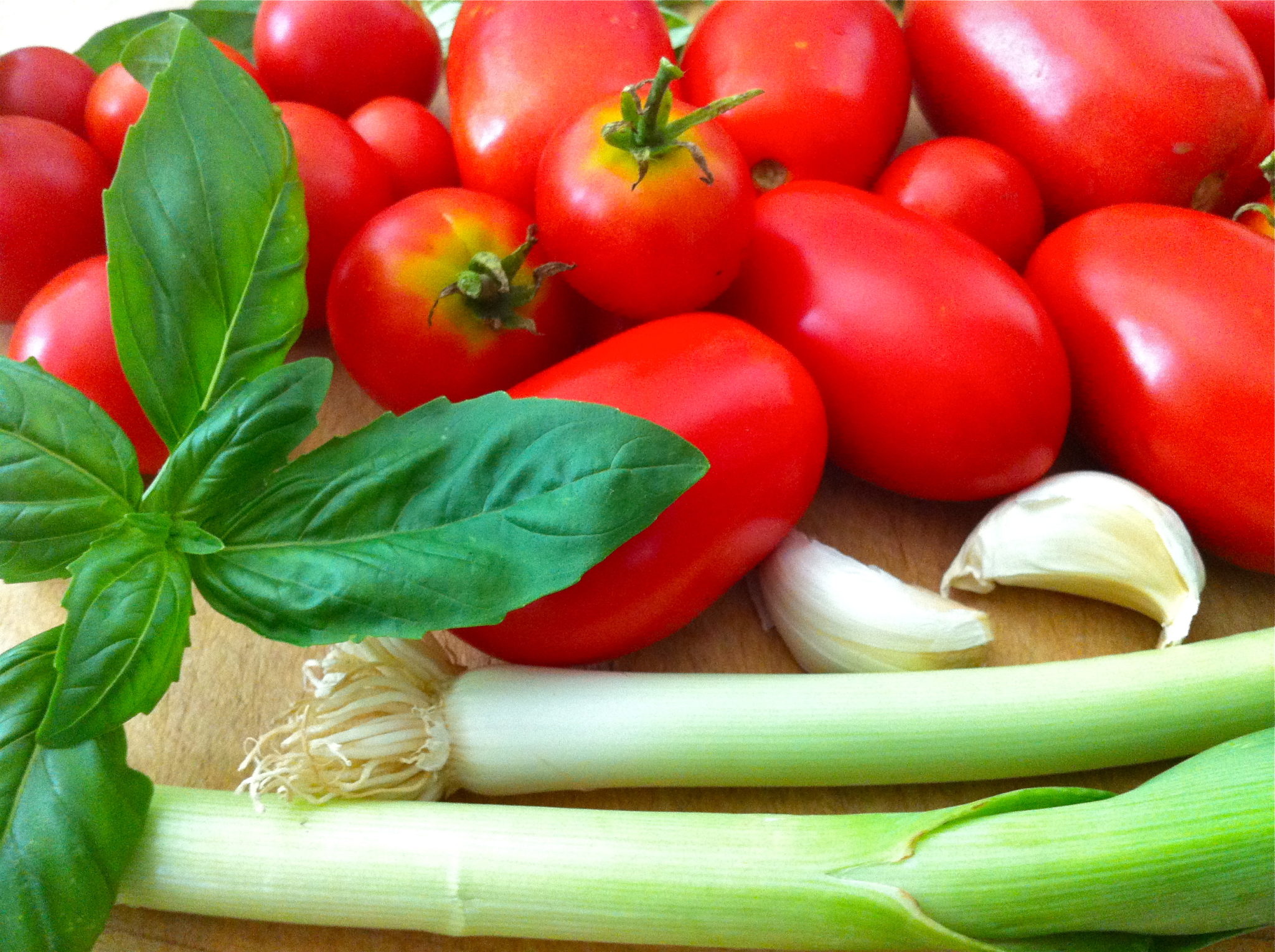 For this rustic sauce, feel free to experiment with various herbs, onions, and types of tomatoes.  When starting with fresh-from-the-field ingredients, it is hard to go wrong.